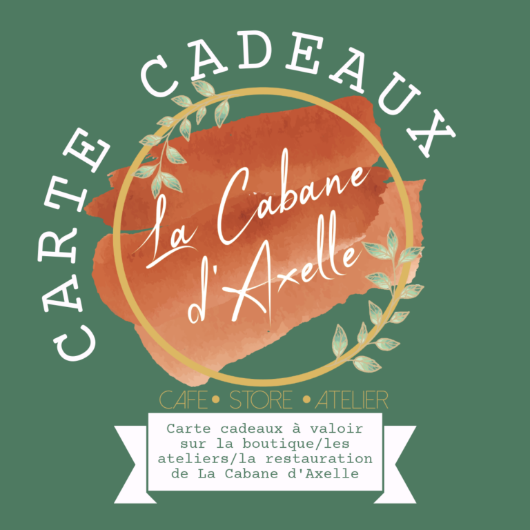 Que ce soit pour un atelier, une pause gourmande ou un repas du midi, la carte cadeau est disponible en magasin ou en ligne sur lacabanedaxelle.com, rubrique « ATELIERS » 💻